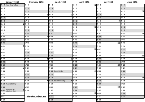 1258 calendar