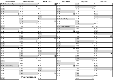 1452 calendar