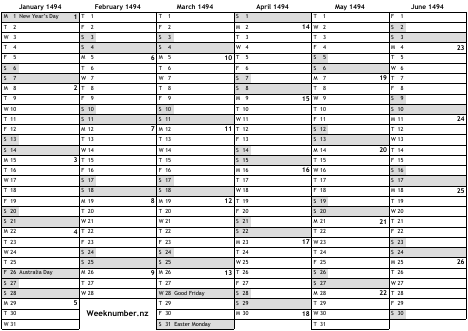 1494 calendar