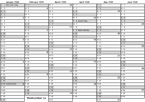 1520 calendar