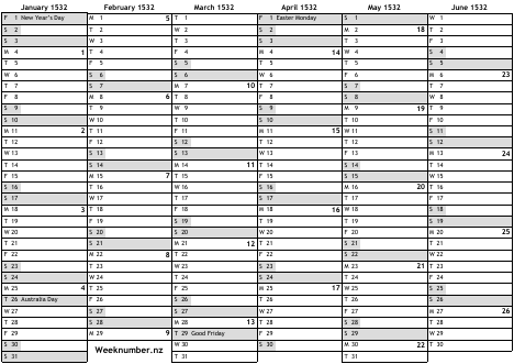 1532 calendar