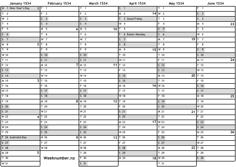 1534 calendar