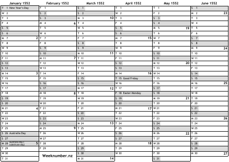 1552 calendar