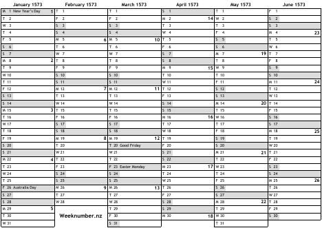 1573 calendar