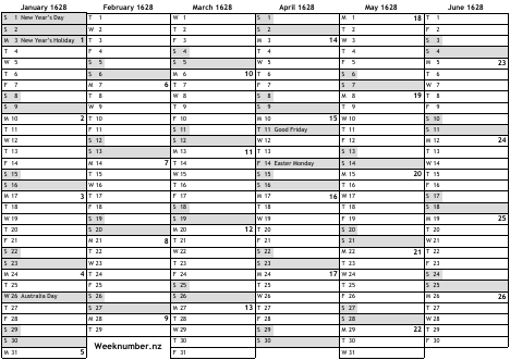 1628 calendar