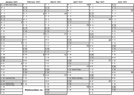 1641 calendar
