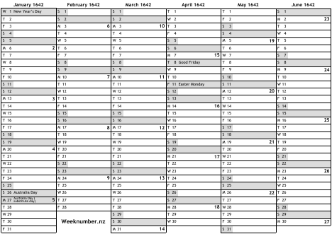 1642 calendar