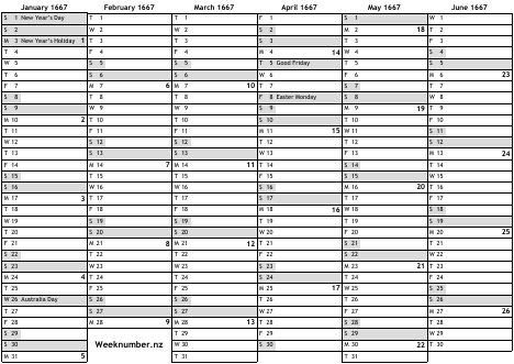 1667 calendar