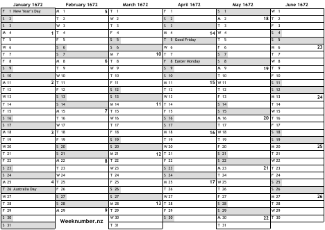 1672 calendar