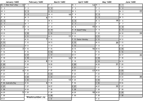 1680 calendar
