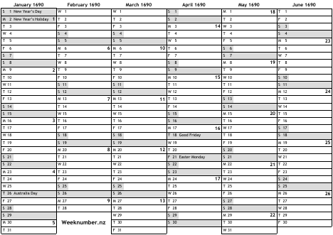 1690 calendar