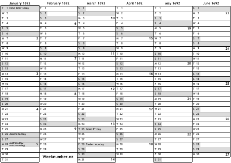 1692 calendar