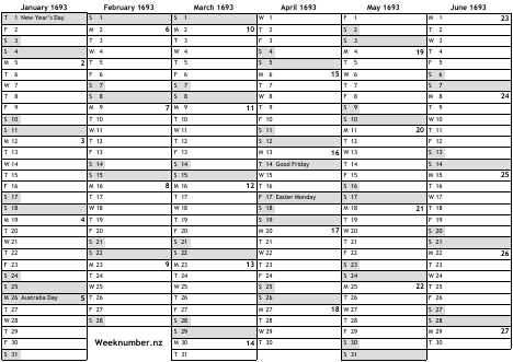 1693 calendar