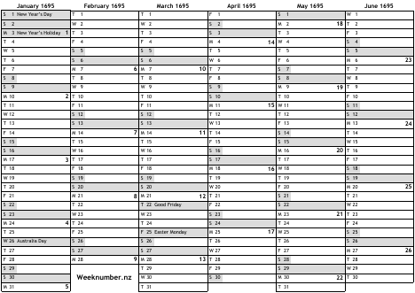 1695 calendar
