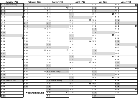 1733 calendar