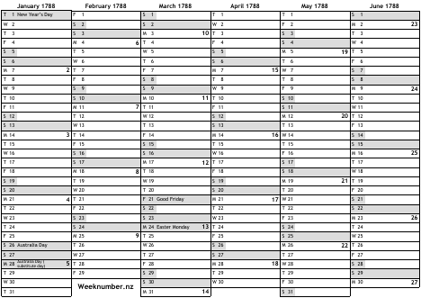 1788 calendar