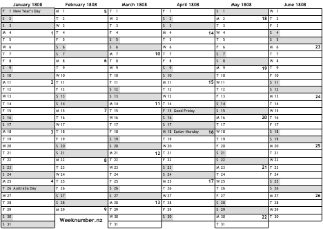 1808 calendar