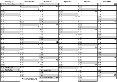1812 calendar