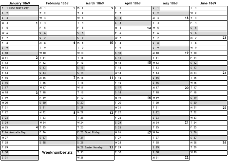 1869 calendar