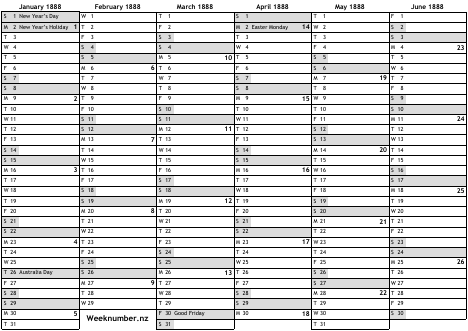 1888 calendar