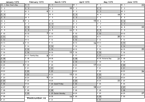 1372 calendar