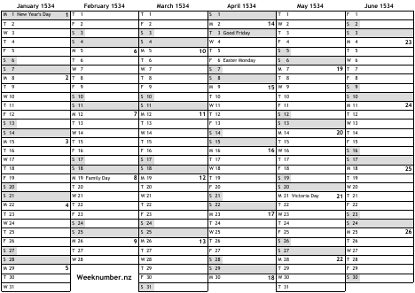 1534 calendar