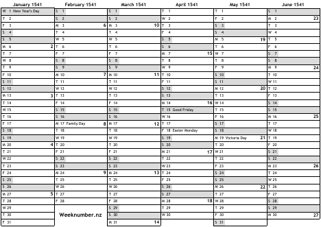 1541 calendar