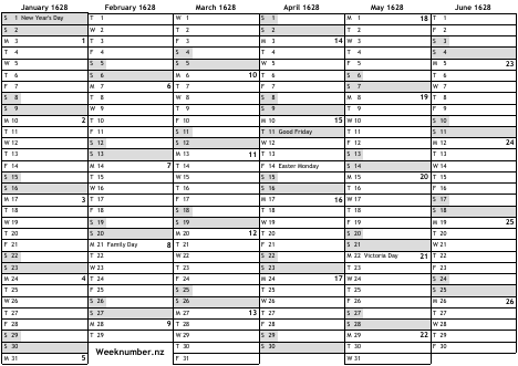 1628 calendar