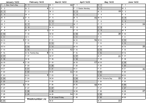 1632 calendar