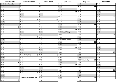 1661 calendar