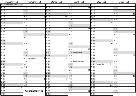1663 calendar