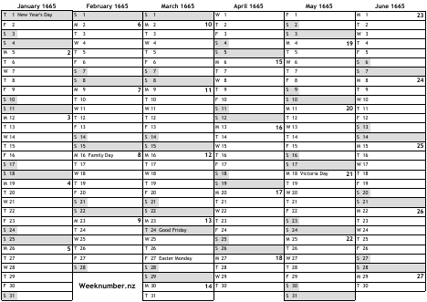 1665 calendar