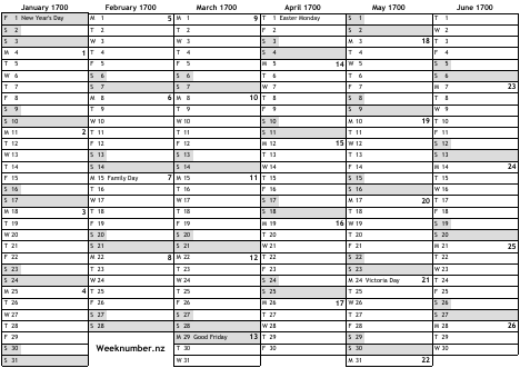 1700 calendar