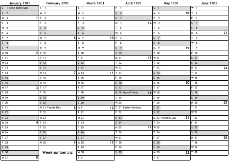 1701 calendar