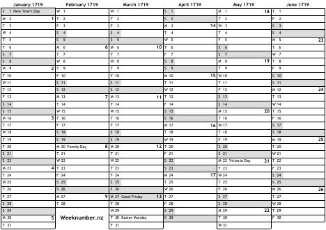 1719 calendar