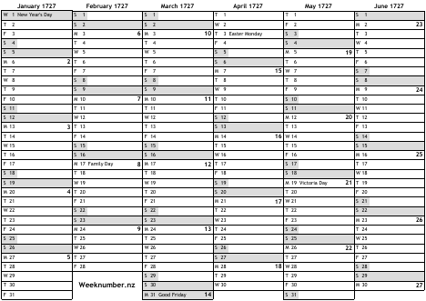 1727 calendar