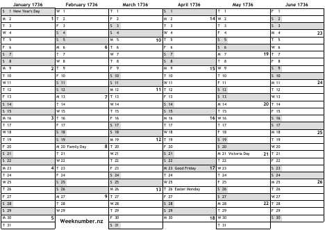 1736 calendar