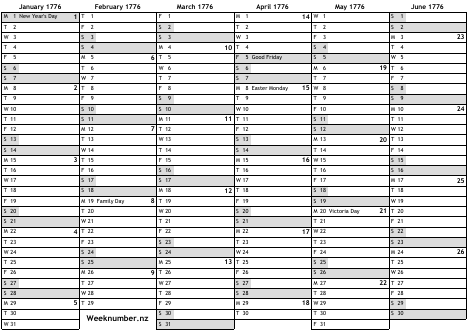 1776 calendar