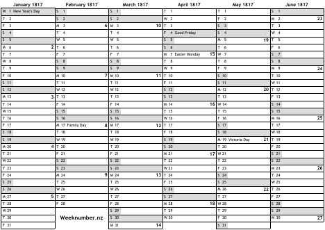 1817 calendar