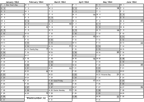 1864 calendar