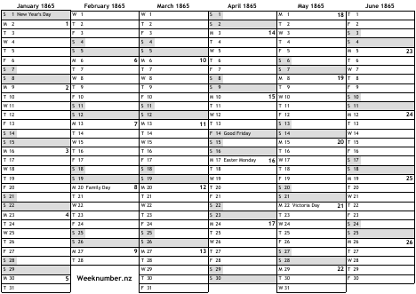 1865 calendar