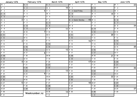 1276 calendar