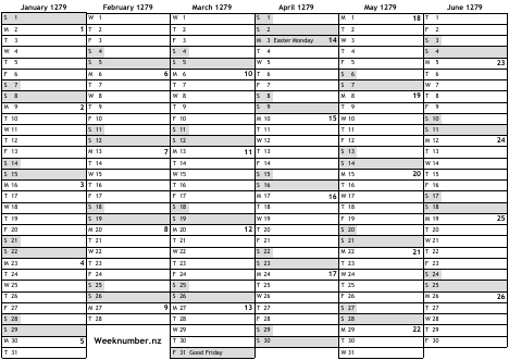 1279 calendar