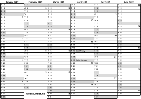 1389 calendar