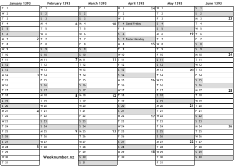 1393 calendar