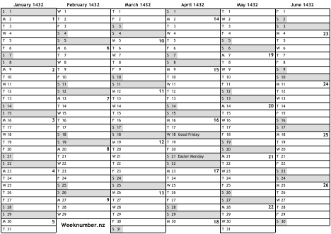 1432 calendar