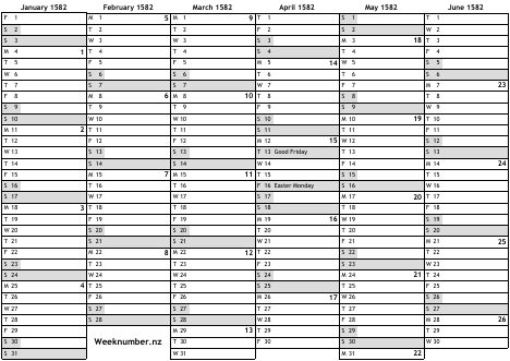 1582 calendar