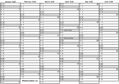 1628 calendar