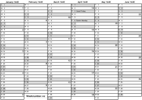 1640 calendar