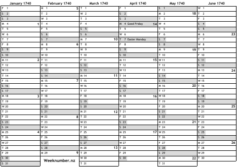 1740 calendar